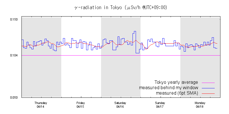 The normal average value for Tokyo is about 0.104 µSv/h.